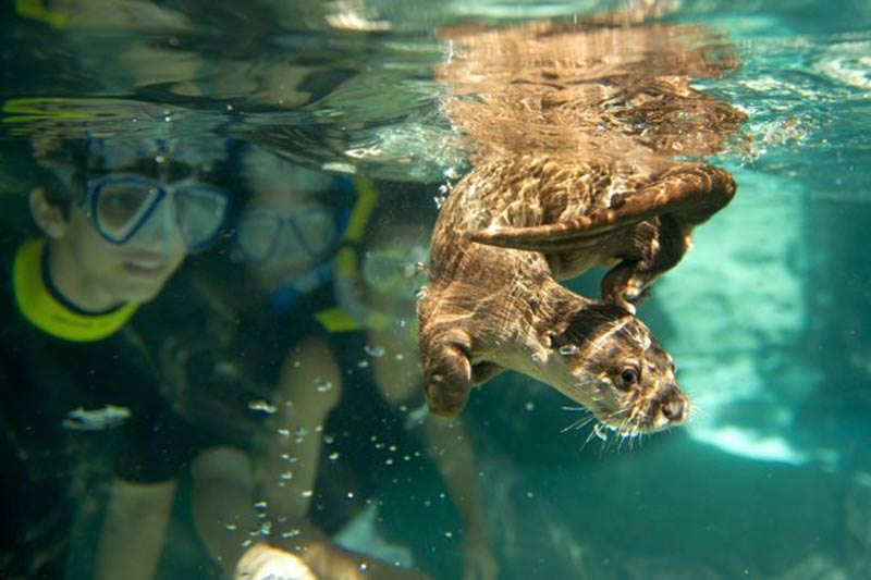 As crianças de 6 a 12 anos devem estar acompanhadas por um adulto pagante que também esteja participando da experiência de nado com golfinhos. As crianças devem medir pelo menos 42 polegadas (1.07 metros) de altura para nadar com os golfinhos.